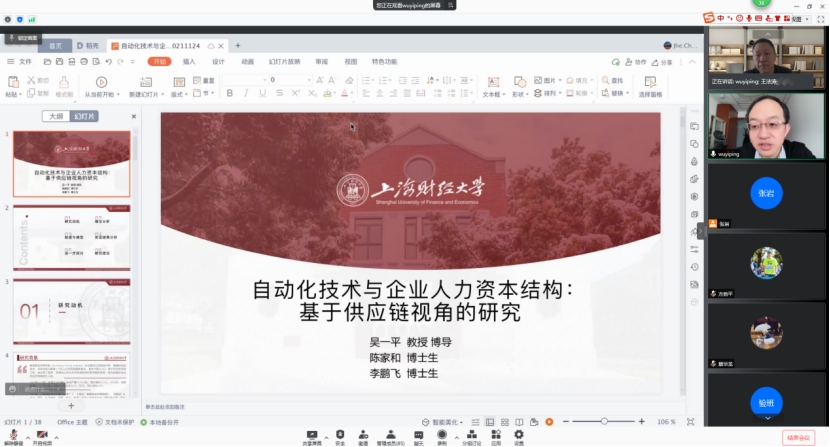 11月25日,上海财经大学博士生导师吴一平教授应商学院邀请,于线上作了题为“自动化技术与企业人力资本结构:基于供应链视角的研究”的学术报告。报告由王法涛老师主持,全校100余名师生参加。